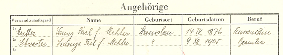 Mutter Fanny Farb *14.4.1876 in Stanislawow; ✡?