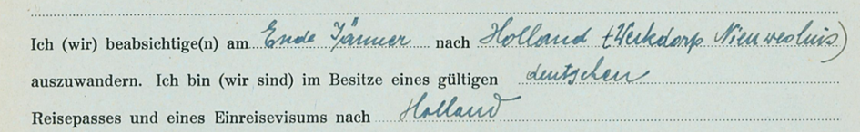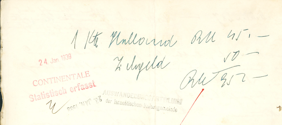 Januar 1939 Übernahme der Fahrkarte und Zehrgeld für die Emigration ins Werkdorp