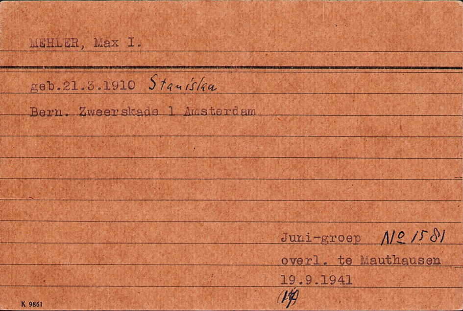 Max Mehler abgemeldet nach Bernhard Zweerskade 1 in Amsterdam