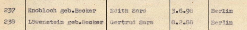 Tante Edith Becker *3.7.1898 in Berlin; ✡ 29.10.1942 Riga; oo Knobloch