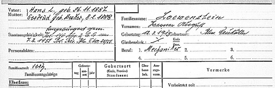 Vater Hans Löwenstein *26.11.1887; ✡ 1915 kriegsgefallen
