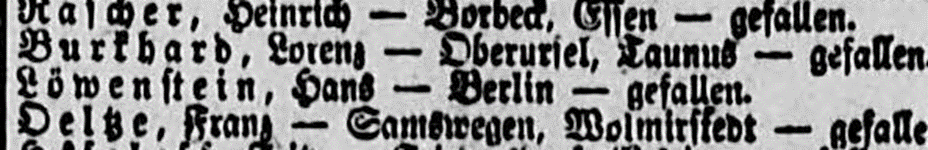 10.9.1915 Mitteilung in den Preußischen Verlustlisten Hans Löwenstein, Soldat der 5. Kompagnie, II. Bataillon, Reserve-Infanterie-Regiments 206, „gefallen“