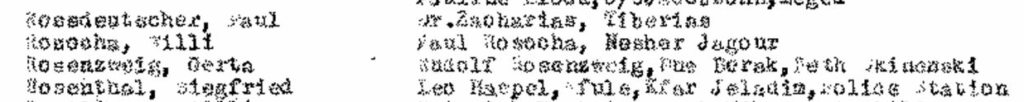 19.2.1940 Registrierung von Paul Rosdeutscher in Athlit; gibt Mendelsohn als Referenz an , als Gemeindeältesten Rabbi Ox (Dokument D/1064/40/CHU);