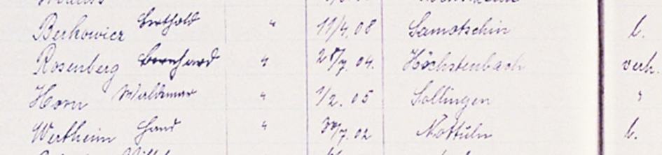 11.11.1938 wurden vier weitere über 17-jährige Männer aus dem Beth Chaluz sowie Ernst Levy aus Regensburg und Fritz Strauß aus Selters in Dachau eingewiesen.