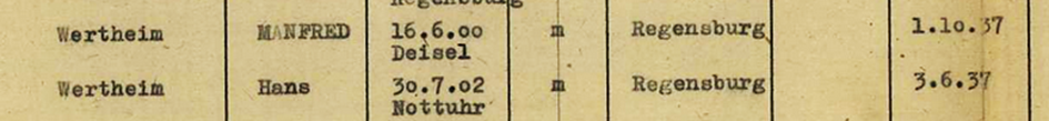 3.6.1937 Hans Wertheim zur Hachschara in das Beth Chaluz in Regensburg