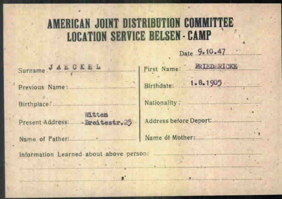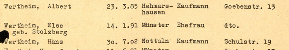 Friederike Wertheim *1.8.1905 in Nottuln; oo Jäckel; Überlebende