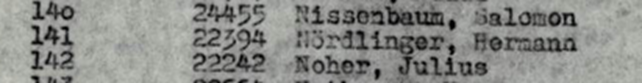 1936 Hermann Nördlinger abgemeldet nach Sorau, Niederlausitz; dort befanden sich die Hachscharalager Schniebinchen und Jessen Mühle; er arbeitet dort als Vorarbeiter.
