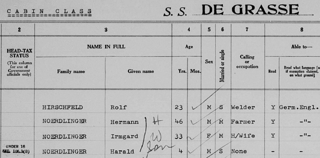 19.-27.12.1947 Hermann, Irmgard und Harald Nördlinger auf der SS GRASSE von Southampton nach New York