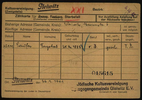 17.5.1939 Dagobert Laufer in Gleiwitz, Wilhelmstraße 5 bei der Minderheitenzählung