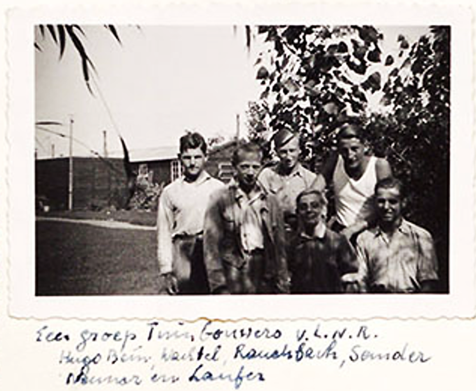 10.11.1941 Eva Laufer mit Sohn Martin Laufer und Neffe Franz Laufer, Gert Herz, Gerhard Hirsch, Hans Joseph, Günter Levy, Hajo Meyer, Harald Rosenbach, Ernst Rosenbaum, Norbert Schweitzer und Hans Stern zur Eröffnung ins Jugendheim des Joodse Raad, Plantage Franschelaan 13