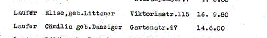 29.11.1941 Tod von Mutter Celina Laufer, Elise Laufer, Siegfried und Margarete Laufer bei Massenerschießung in Fort IX in Kauen