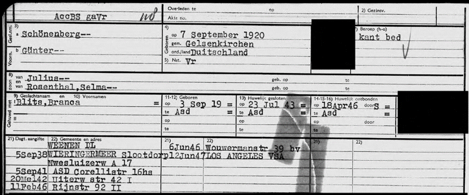 Heirat 23.7.1943 in Amsterdam mit Branca Blits *3.9.1919 in Amsterdam