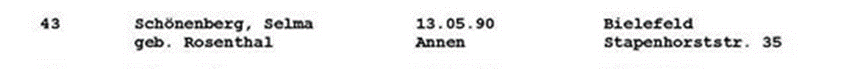 19.3.1942 Mutter Selma von Wellentrup ins Judenhaus im aufgelösten jüdischen Altenheim Bielefeld, Stapenhorststraße 35; Leiterin war Margarete Feist