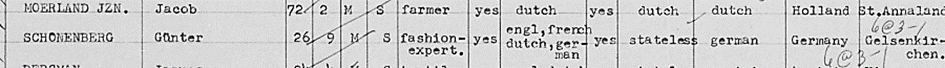 5.9.1941 Günter Schönenberg offiziell aus Wieringermeer abgemeldet nach Amsterdam, Corellistraat 16; die Tante Toni Meyer geb Schönenberg kann ihn und seine Schwester Erna aus Platzmangel nicht aufnehmen