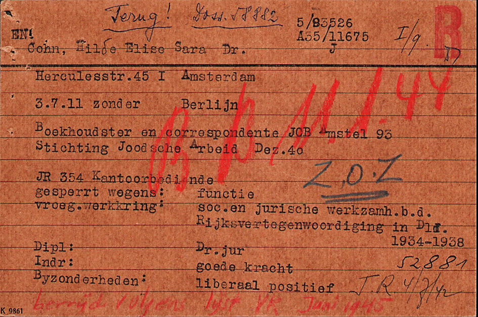 Sie arbeitet für die Joodsche Centrale voor Beroepsopleiding JCB und den Joodse Raad JR als Sozialarbeiterin und Rechtsberaterin