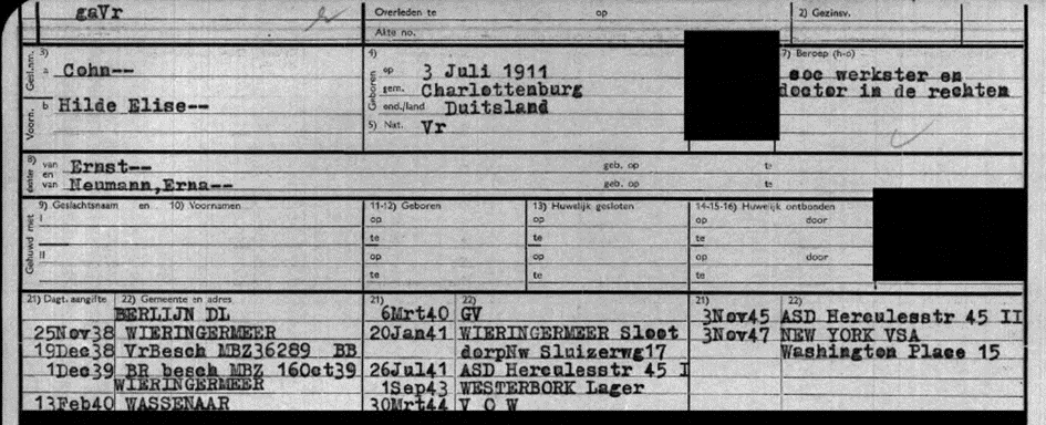 25.11.1939 Hilde Cohn aus Berlin ins Werkdorp
