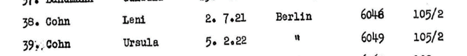 Ursula Cohn *5.2.1922 Berlin; ✡ ?; Kindertransport; oo Hutton