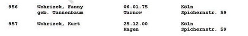 7.12.1941 Kurt und Fanny Wohrizek deportiert mit 1011 Juden aus Köln nach Riga