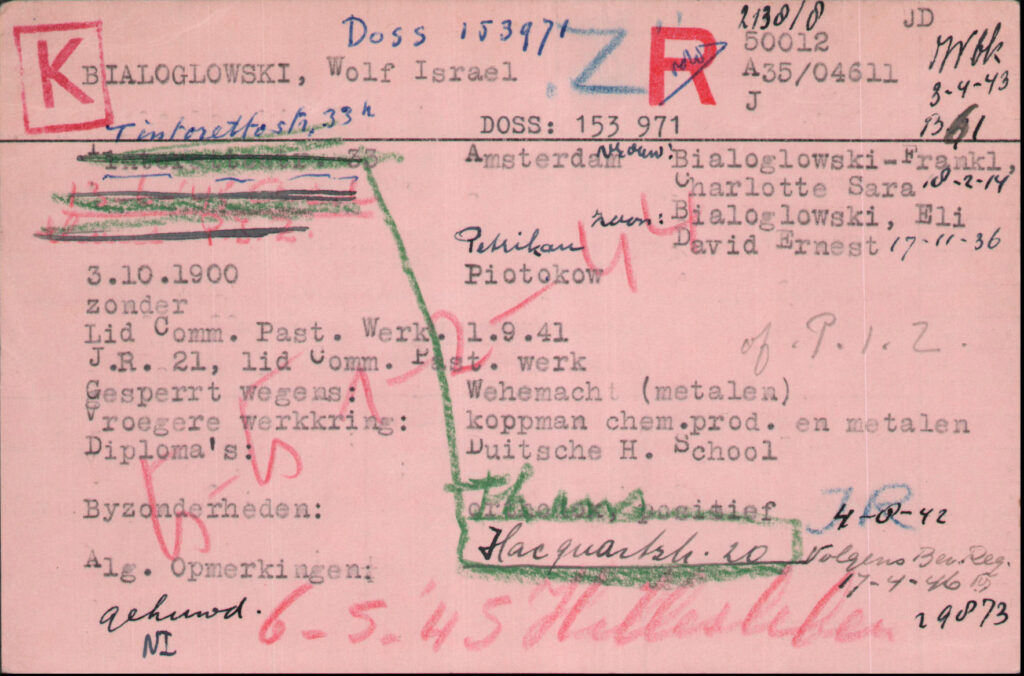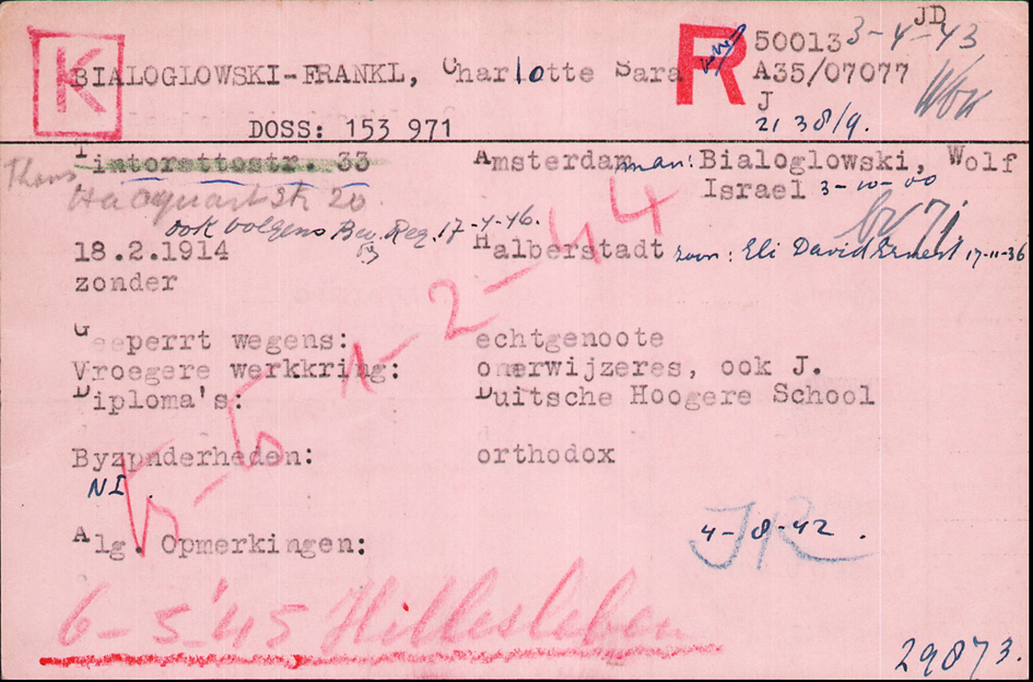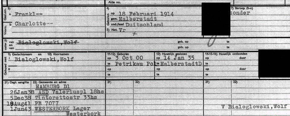 3.4.1943 Einweisung von Lotte, Wolf und Eli Bialoglowski in das polizeiliche Judendurchgangslager Westerbork