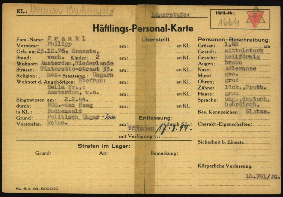 17.3.1944 Tod des Vaters im im HKB Krankenrevier des KL Buchenwald