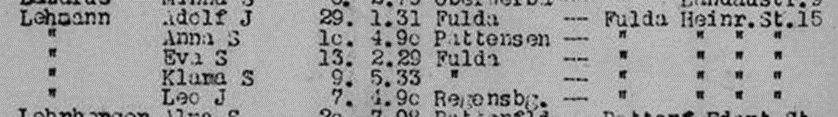 17.5.1939 Schwester Anna mit Ehemann Leo, Sohn Adolf und den Töchtern Eva und Klara Lehmann sowie Schwester Paula Frank in Fulda Heinrichstraße 15 bei der Minderheitenzählung