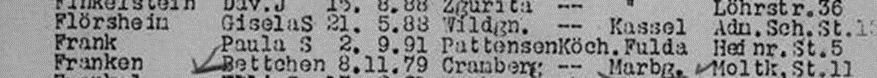 Moses Frank *1.12.1924 in Fulda; ✡ ?