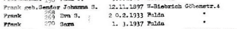 Sara Frank *1.3.1937 in Fulda; ✡ 14.6.1942 in Sobibor
