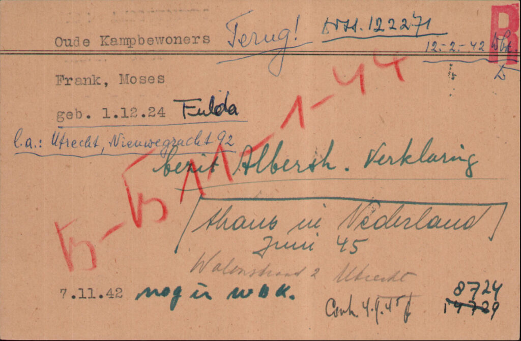 12.2.1942 Einweisung von Sohn Moses in das polizeiliche Judendurchgangslager Westerbork