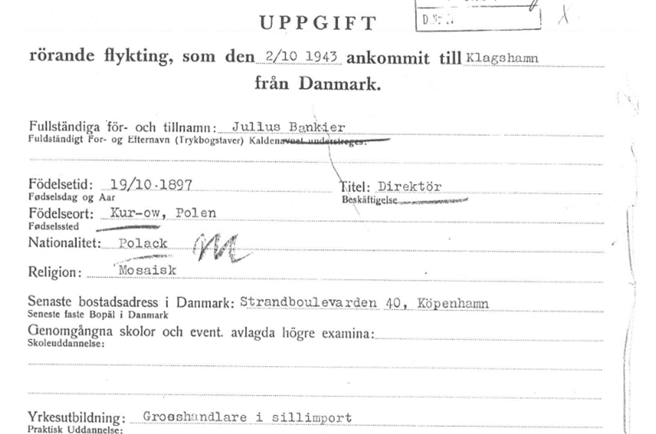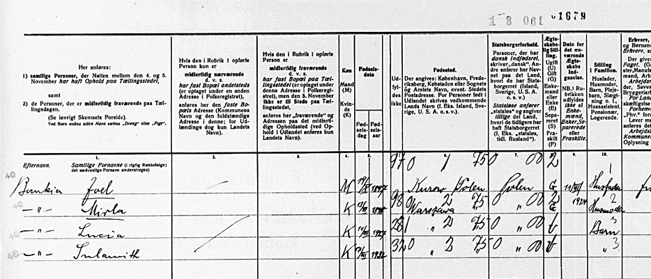 5.11.1940 Fam. Bankier bei Dänischem Census in Kopenhagen, Strandboulevarden 40
