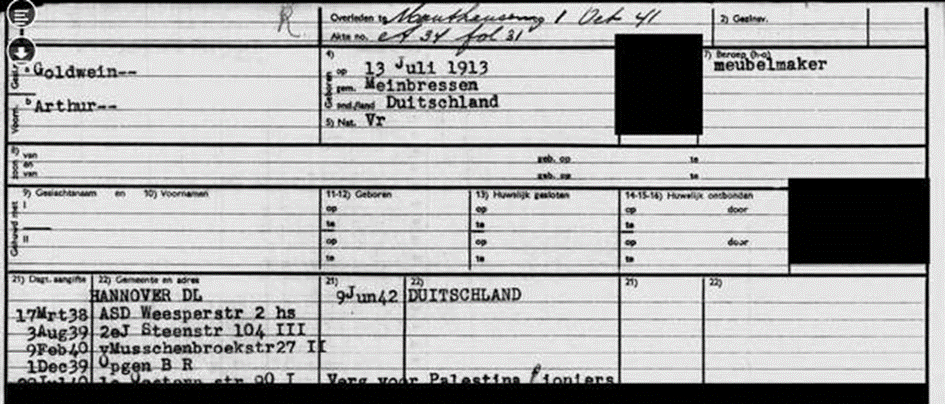 Mai 1940 -Juni 1941 wohnt Arthur u.a. mit Bruder Louis im Beth Chaluz (Hechaluz-Zentrale) in der Oosterparkstraat 90