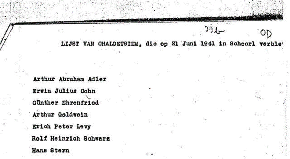 Alle männlichen Chaluzim im Beth Chaluz werden verhaftet, so auch Arthur Goldwein und sein Bruder Ludi sowie Hans Stern und Gideon Drach. Ludi Goldwein wird aber wegen seines jungenhaften Aussehens und der zarten Statur aus der SS-Zentrale in der Euterpestraat wieder zurückgeschickt.