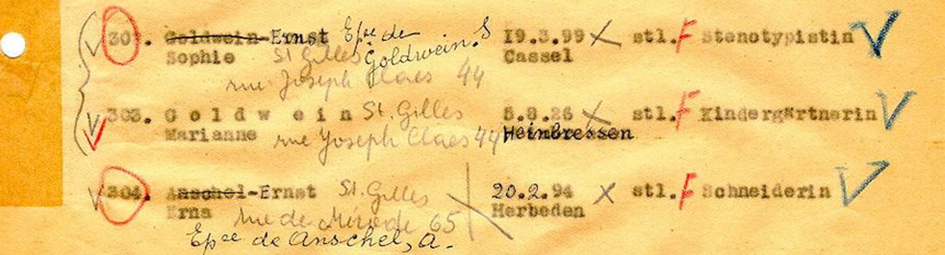 31.7.1943 Schwester Marianne zusammen mit den Tanten Sophie Goldwein geb. Ernst und Erna Anschel-Ernst, beide aus Herbede gebürtig auf dem XXI. Transport von Mechelen nach Auschwitz