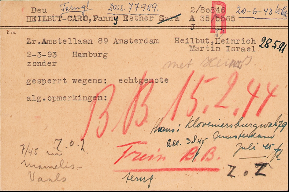 20.6.1943 Einweisung von Fanny mit Ehemann Heinrich Heilbut und den Söhnen Walter und Robert in das polizeiliche Judendurchgangslager Westerbork