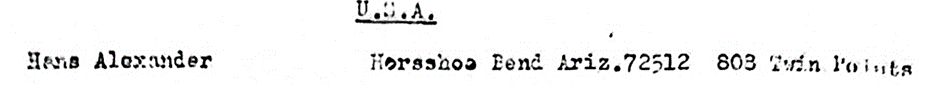 1968 Hans Alexander in Twin Points; Adressenliste der Werkdorper
