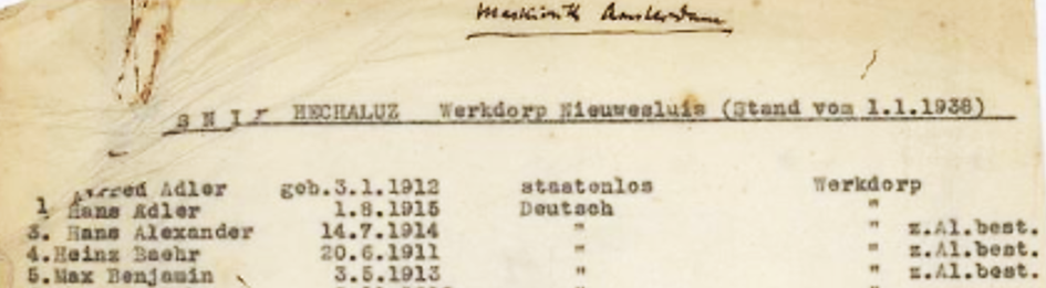 1.1.1938 auf der Liste der Hechaluz-Mitglieder im Werkdorp