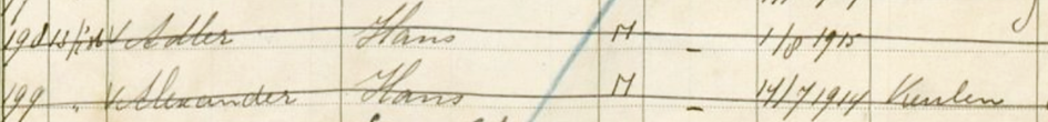 23.2.1939 23.2.1939 Hans Alexander zusammen mit Horst Günter Baer, Helmut Mendelsohn, Ellen Posner, Hans Riess abgemeldet zur Ausreise nach Kenia
