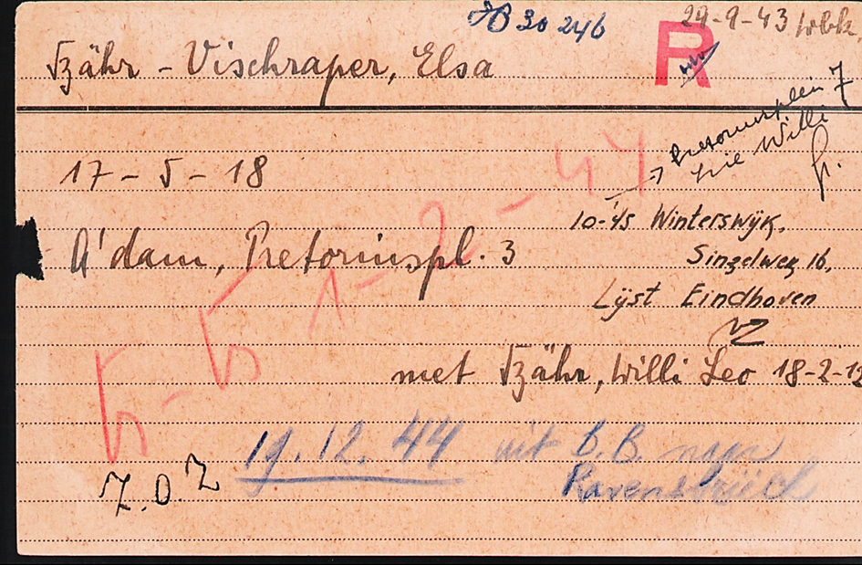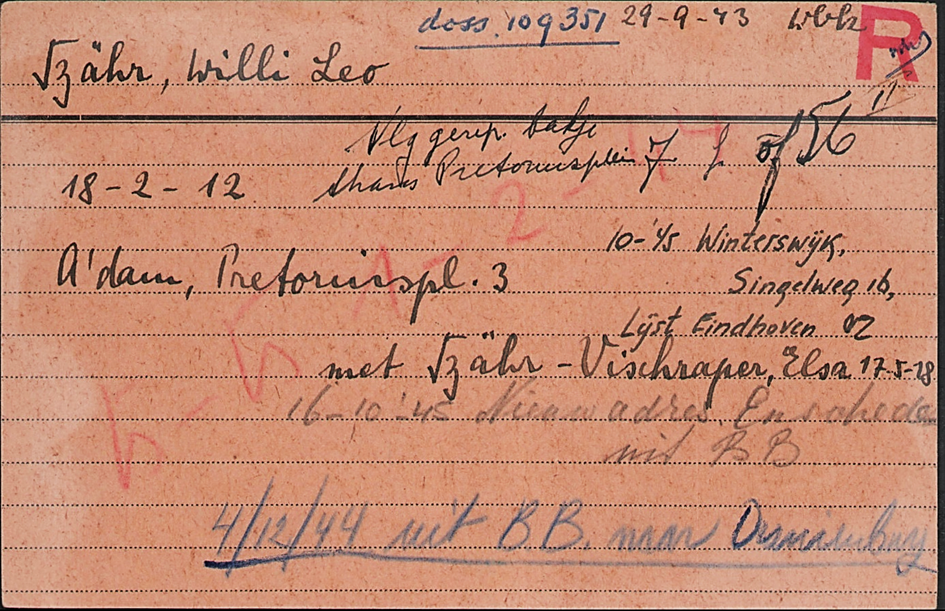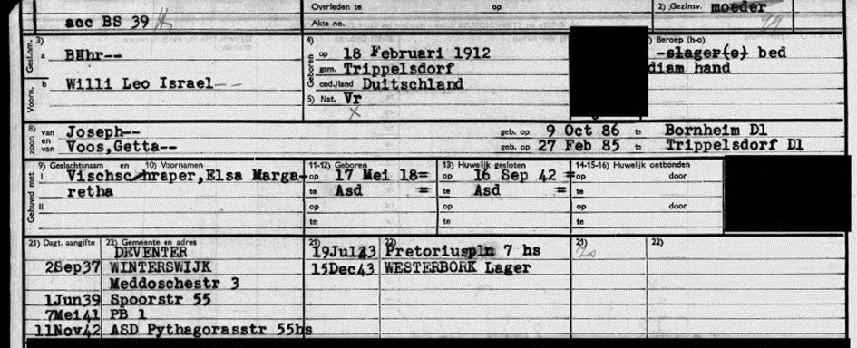 29.9.1943 Einweisung von Willy und Elsa Bähr in das polizeiliche Judendurchgangslager Westerbork