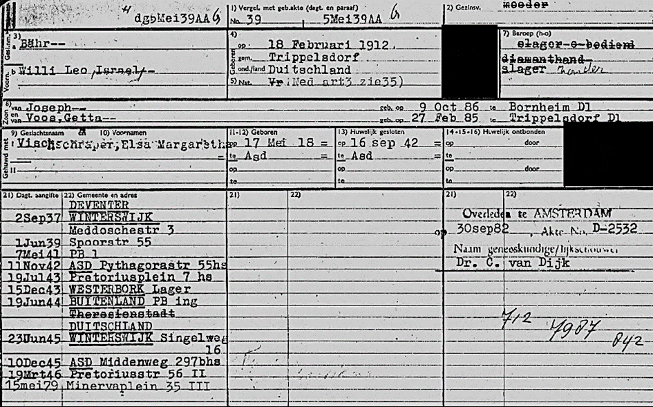 Heirat 16.9.1942 Elsa Vischschraper *17.5.1918 in Amsterdam