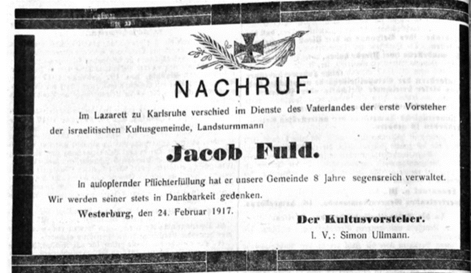 Jakob Fuld *30.6.1871 in Westerburg; ✡23.2.1917 im Ersten WK