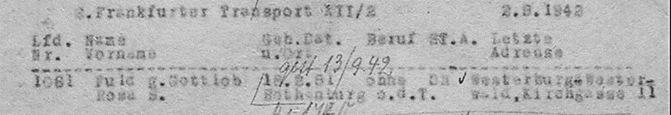 1.9.1942 beide Eltern auf dem Transport XII/2 Frankfurt->Theresienstadt