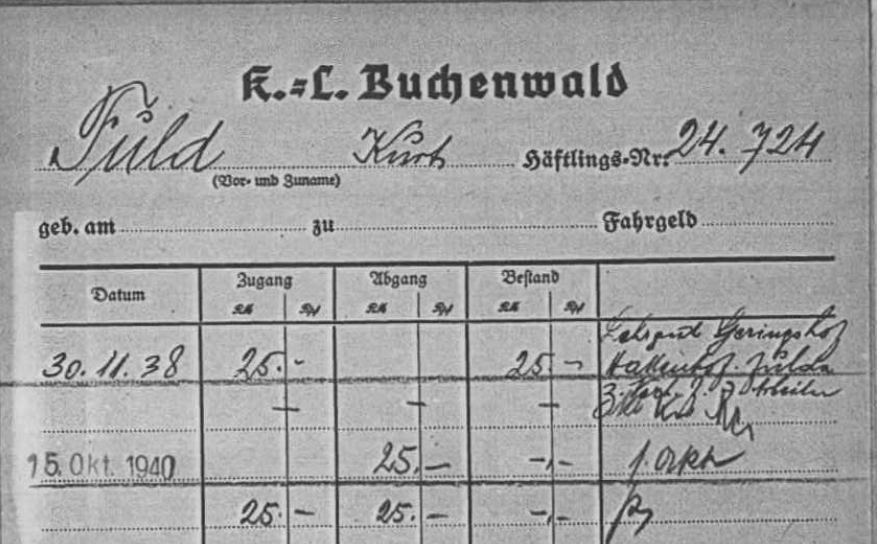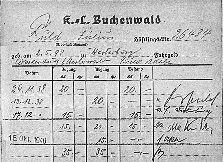 11.11.1938 Alwin Fuld „Schutzhaft“ in Buchenwald; Häftlingsnummer 4410