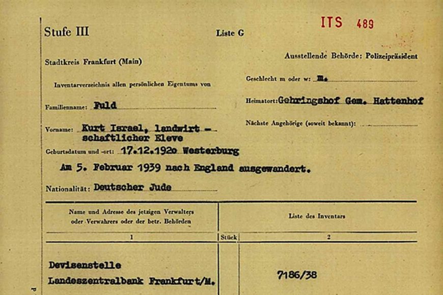 5.2.1939 Kurt Fuld abgemeldet aus dem Gehringshof, Hattenhof nach England