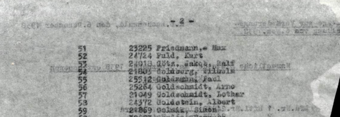 3.3.1943 Alwin Fuld wird eingewiesen in Auschwitz III zum Aufbau des IG-Farben Werkes Buna Monowitz, Häftlingsnummer 104923