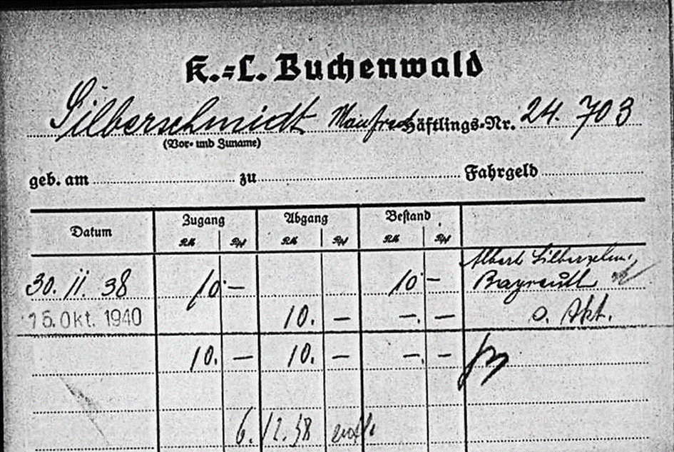 6.12.1938 Entlassung aus dem KL Buchenwald zusammen mit Kurt Fuld