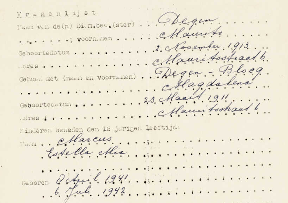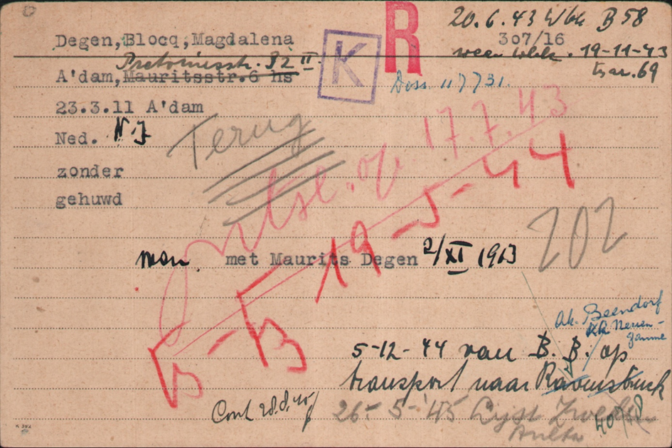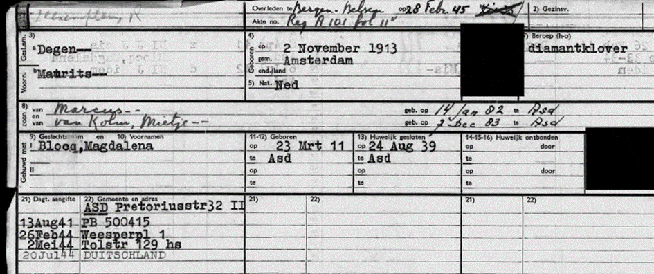 Maurits Degen *2.11.1913 in ASD; ✡ 28.2.1945; oo Magdalena Blocq (1911-1988)