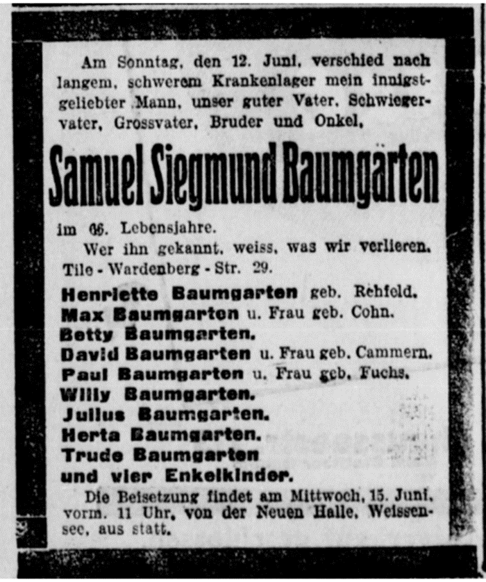 Großvater Samuel Baumgarten *1855; 12.6.1921 in Berlin