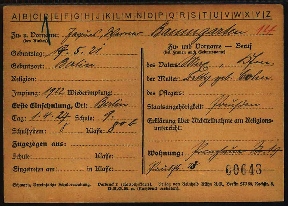 3.12.1937 Werner Baumgarten abgemeldet aus dem Werkdorp nach Berlin