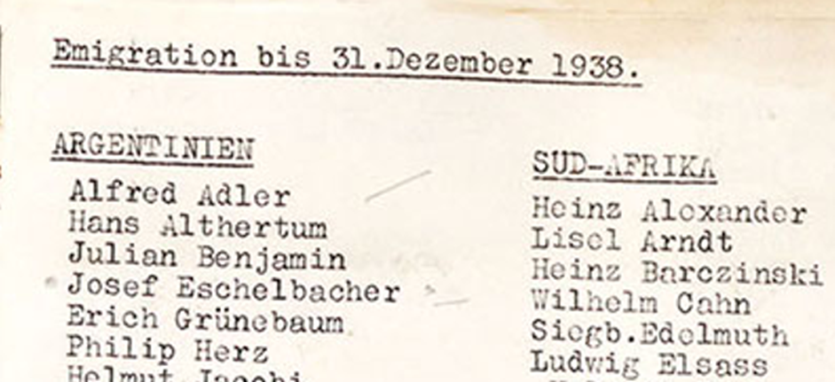 Josef Eschelbacher auf der Werkdorp-Emigrationsliste von 1938
