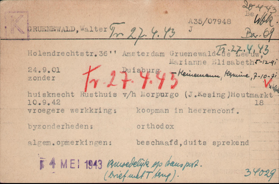 27.4.1943 Walter und Marianne Grünewald auf dem Transport von Westerbork nach Sobibor