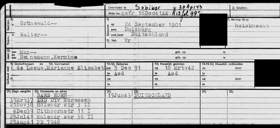 Heirat 18.3.1942 in Amsterdam Marianne de Leeuw *5.12.1891 in ASD